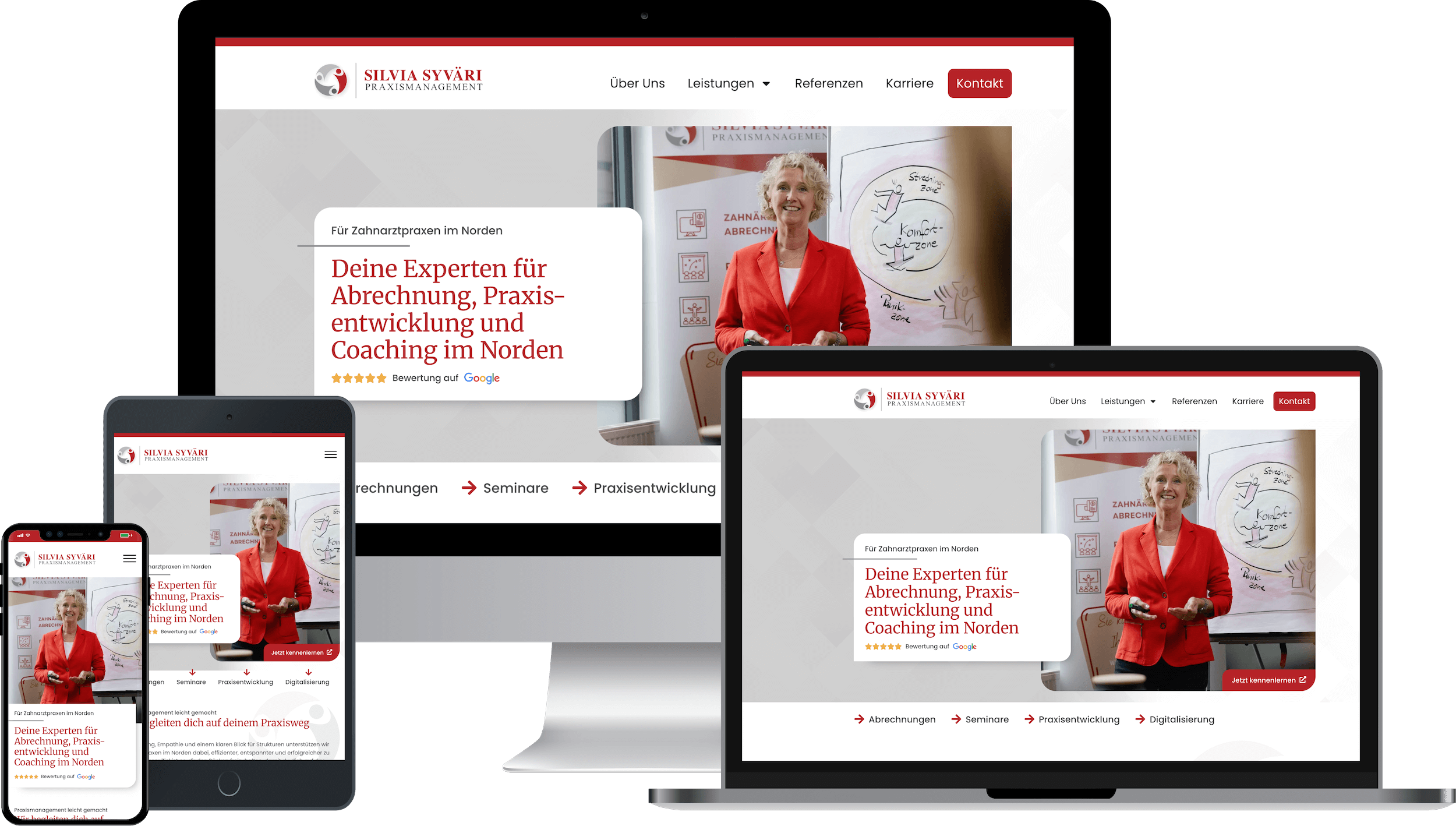 Moderne Website mit Online-Buchungsfunktion. Alle wichtigen Informationen für den Patienten stehen online zur Verfügung. Optimiertes Google Unternehmensprofil.